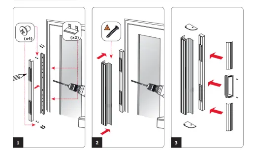 Dveřní lišta s madlem a 2x magnetický 300 kg zámek, 2.5m, hliník