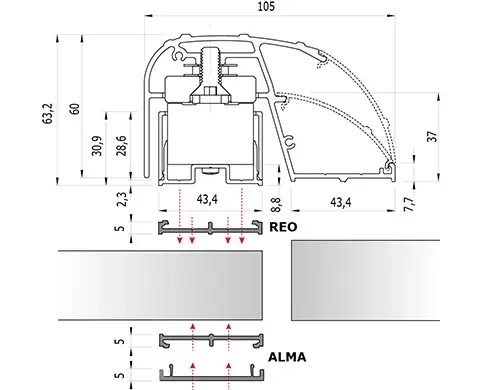Dveřní krátká lišta s madlem a vestaveným přídržným elektromagnetem