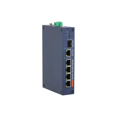 Průmyslový PoE switch s cloudovým managementem, ideální pro síťová řešení v náročnějších provozech, 4x port 10/100 Mbps včetně PoE dle IEEE 802.3af/at (1x port Hi-PoE) celkový výkon 60 W, 1x port 10/100/1000 Mbps (uplink), 1x port SFP 1000 Mbps (uplink), extend mód pro spojení rychlostí 10 Mb/s do vzdálenosti 150-200 m na UTP včetně napájení PoE (dle kvality použitého vedení), automatická detekce 10/100 Mbps a zkřížení kabelů.