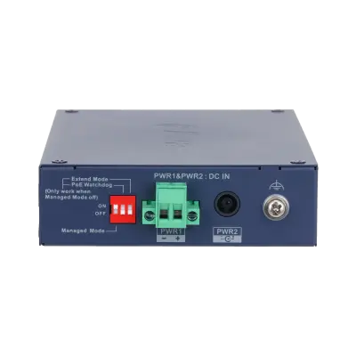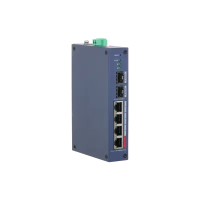 Průmyslový PoE switch s cloudovým managementem, ideální pro síťová řešení v náročnějších provozech, 4x port 10/100 Mbps včetně PoE dle IEEE 802.3af/at/bt (1x port Hi-PoE) celkový výkon 90 W, 2x port SFP 1000 Mbps (uplink), extend mód pro spojení rychlostí 10 Mb/s do vzdálenosti 150-200 m na UTP včetně napájení PoE (dle kvality použitého vedení), automatická detekce 10/100 Mbps a zkřížení kabelů.