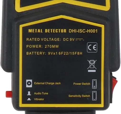 Ruční detektor kovu, dvě úrovně citlivosti, pracovní frekvence 25 KHz. Zvukový, světelný a vibrační alarm detekce kovu. Samostatné ovládání zvukového a vibračního alarmu. Baterie 9V je součástí dodávky.