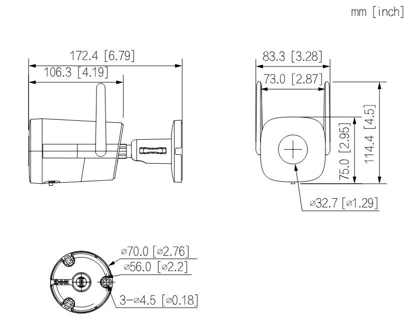 5Mpx venkovní Wi-Fi bullet IP kamera, CMOS snímač 1/2.7", rozlišení 2880x1620@25fps, objektiv 2.8 mm (104°), citlivost až 0.0007 lux@F1.6 (B/W, 30IRE), DWDR, ICR, komprese videa H.265/H.264, duální smart přisvícení do 30m. Vestavěný mikrofon, slot na μSD kartu max. 256 GB, ONVIF, napájení 12V DC, krytí IP67, RJ-45 10/100 Base-T.