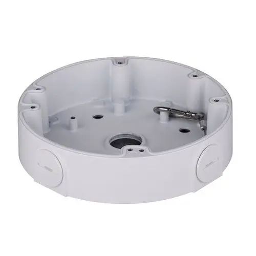 Krabička pro instalaci dome kamer značky Dahua HDBW(EP). Kabel je protažen nahoru nebo do strany. Průměr 161mm, výška 37mm. Hmotnost 0,45kg. Max zátížení 3kg.