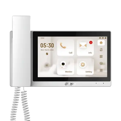 Barevný LCD 7" bytový monitor s dotykovou obrazovkou a sluchátkem. Rozlišení 1024x600, interkom, vnitřní paměť pro nahrávání obrázků a videa (microSD není součástí).