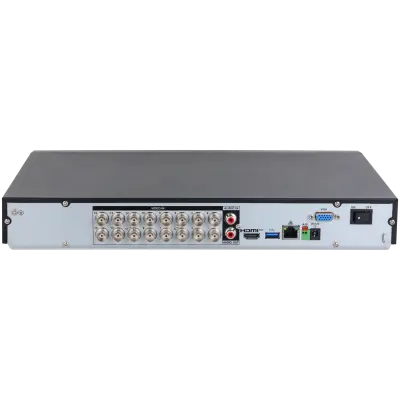 Komprese vylepšeným kodekem H.265+. Výstupy HDMI + VGA na lokální monitor, pozice pro 2x disk SATA max. 16 TB, 1x LAN, 2x USB pro externí zálohu a myš, RS-485 pro PTZ, 1x audio vstup RCA, 1x audio výstup RCA, podporuje příjem audia 16x po koaxu (z mikrofonu v HDCVI kameře).