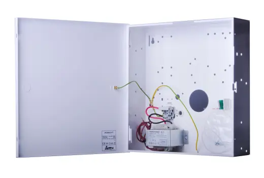 Plechová skříň s transformátorem a tamper kontaktem pro ústředny a napájecí moduly