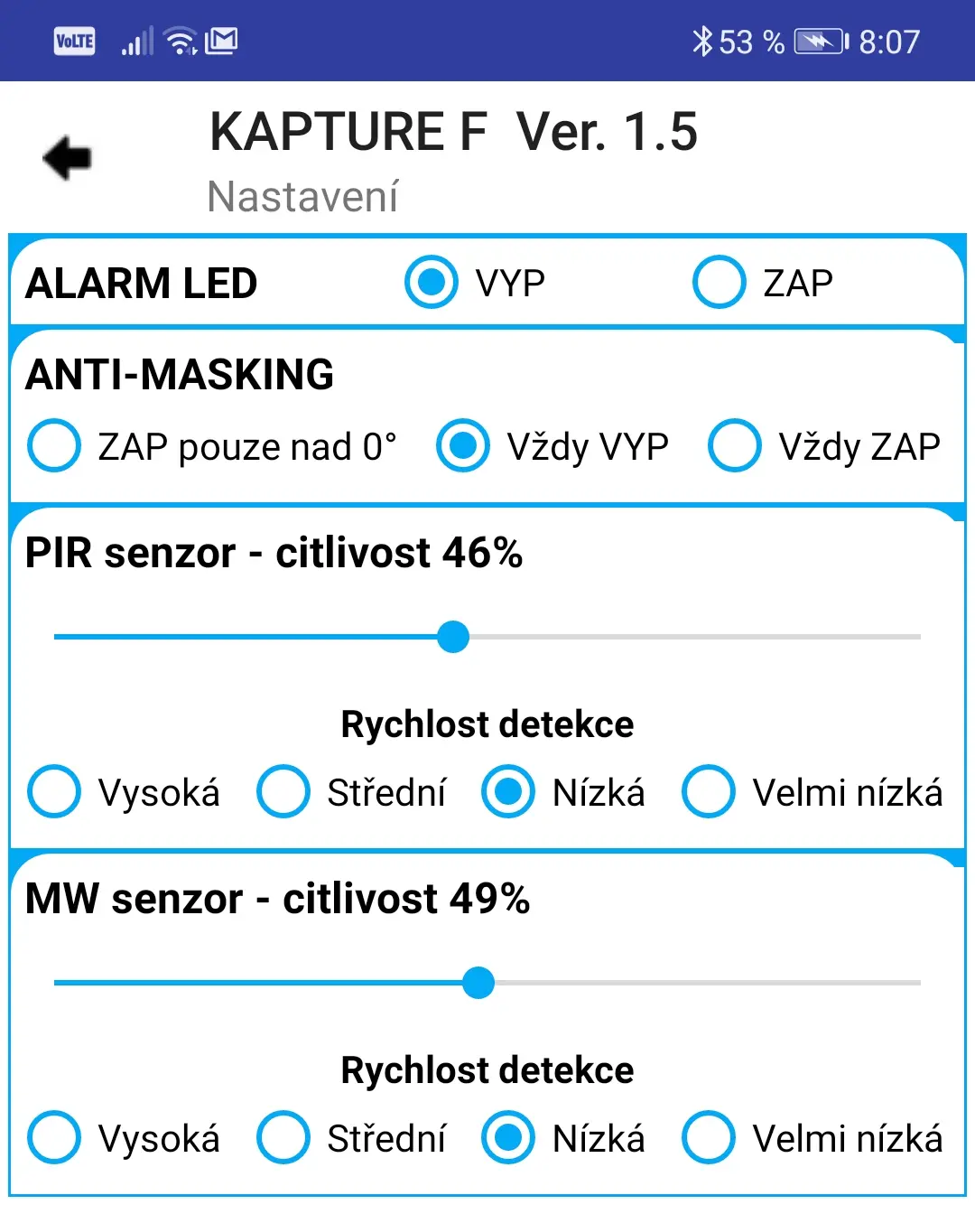Mobilní aplikace pro vzdálené nastavení detektorů Duevi