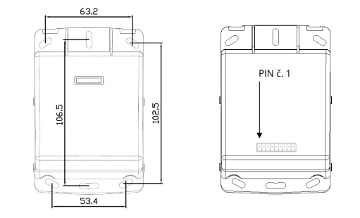 Rozměry snímače: 80,4 mm x 121,5 mm x 38,7 mm; Rozměry s krytem: 82,5 mm x 125,8 mm x 42 mm