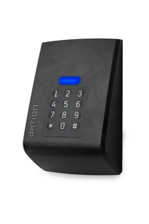 Bezkontaktní snímač řady Aktion.NEXT s možností připojení krytu s membránovou PIN klávesnicí.