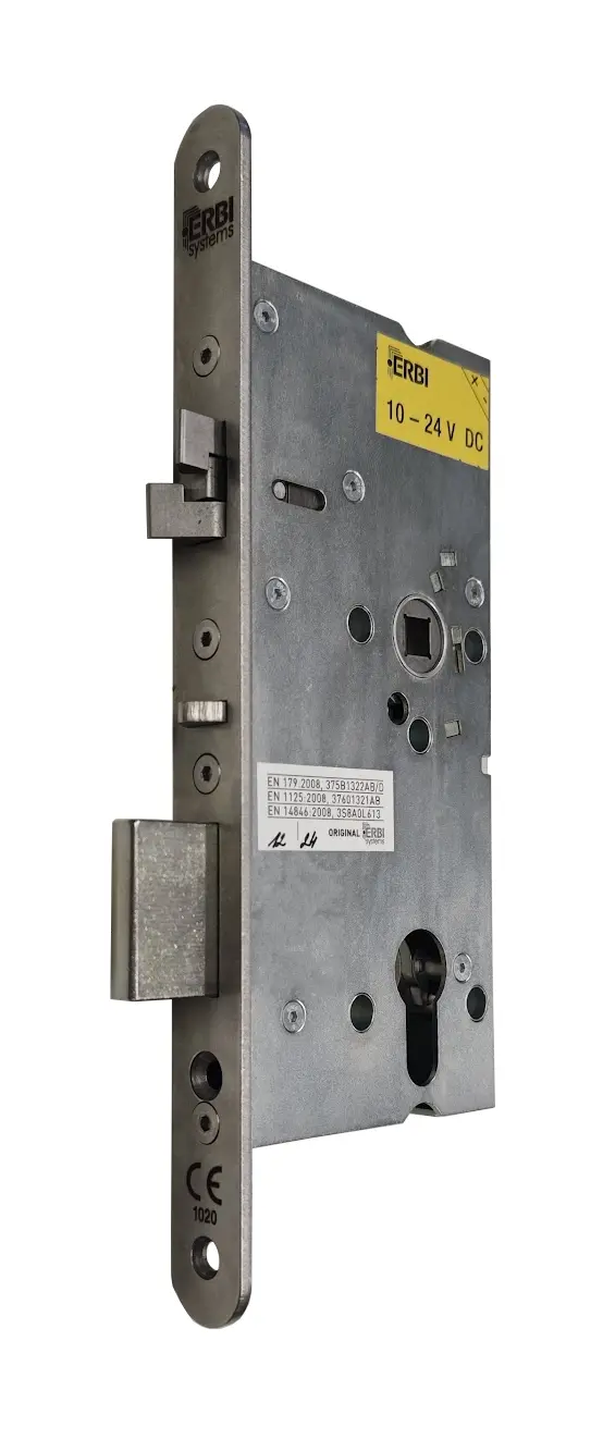 Elektrotechnická data: solenoid 10 - 24V DC / 230mA (pro 12V) s ochranou proti přepólování s akustickou signalizací připojení zámku - dvoupinový konektor (pro kabel ERBI KAB 6/2K nebo redukci ERBI KAB 0,1/2K v příslušenství)