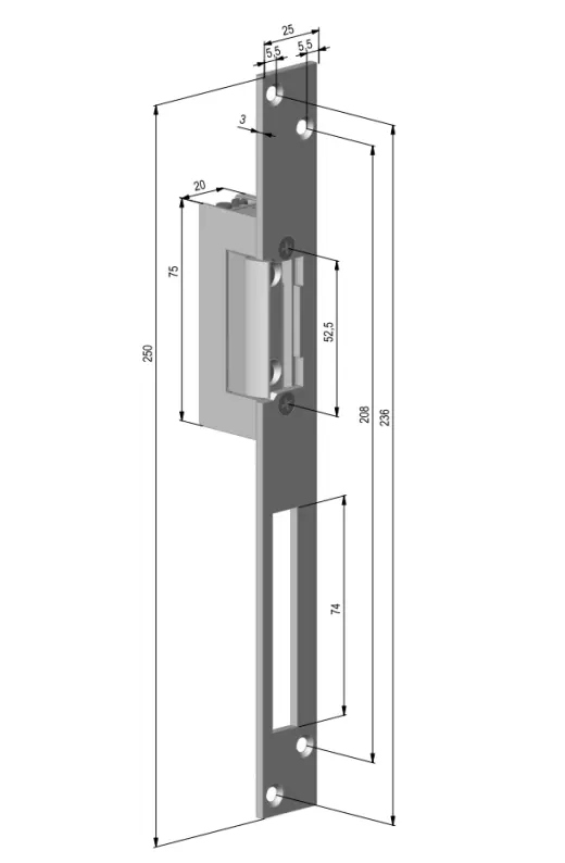 Je v poloze OTEVŘENO jen po dobu trvání napěťového impulzu – to je pouze po dobu, po kterou je stisknuto patřičné tlačítko na ovládacím zařízení. Mimo tuto dobu jsou dveře UZAMČENY. Nastavitelná západka.