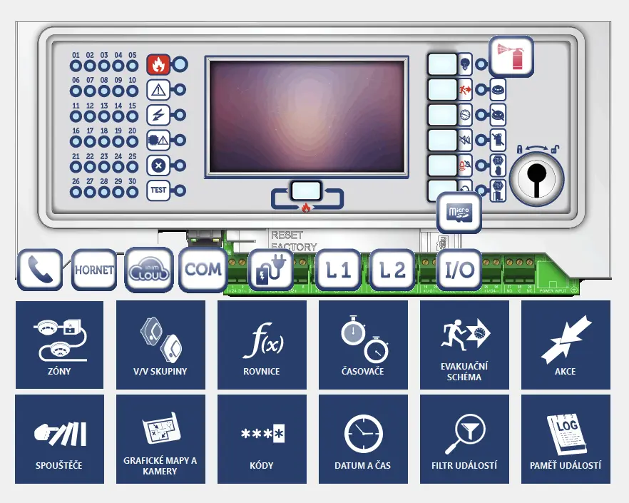 Previdia C200SG má dvě adresovatelné kruhové linky pro 240 adresovatelných zařízení