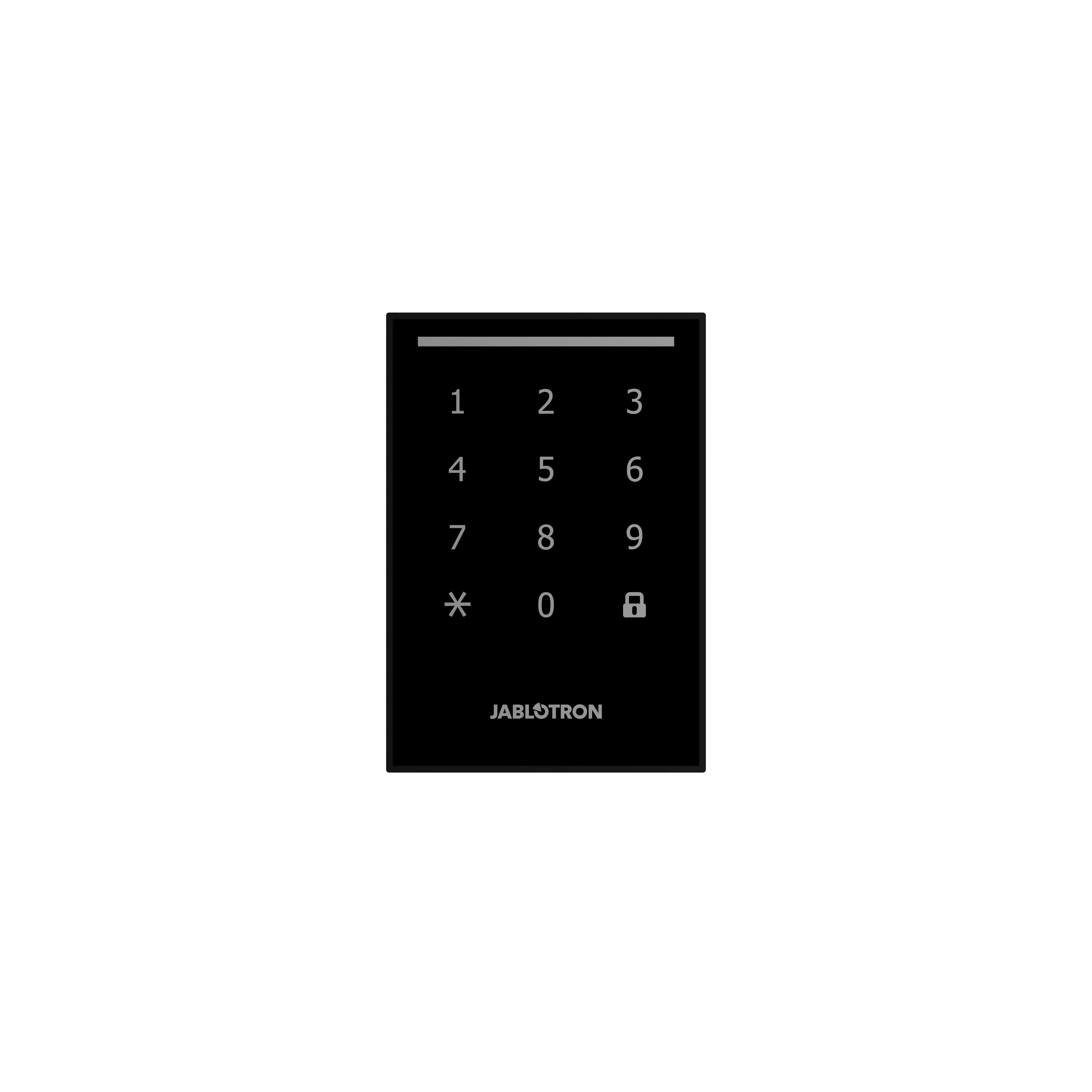 Venkovní dotyková klávesnice obsahuje 2 čtecí zóny a umožňuje současnou kombinaci frekvencí 125 kHz (RFID) a 13,56 MHz (MIFARE® Classic). Klávesnici lze použít k ovládání sekcí, aktivaci PG výstupu a tím např. k ovládání přístupu (dveřního zámku). Na čelní straně je znázorněna dotyková klávesnice s kapacitním