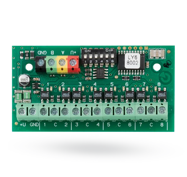 Výrobek je komponentem systému JABLOTRON 100+. Poskytuje celkem osm galvanicky oddělených výstupů. Může sloužit například k ovládání optických indikačních prvků, rádiových komunikátorů nebo silových relé.