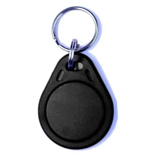 Bezkontaktní RFID přívěsek klíčů v černé barvě (standard EM UNIQUE 125kHz). K systému lze přiřadit až 50 přívěšků. Pro vyšší ochranu lze použití přívěšku podmínit zadáním číselného kódu.