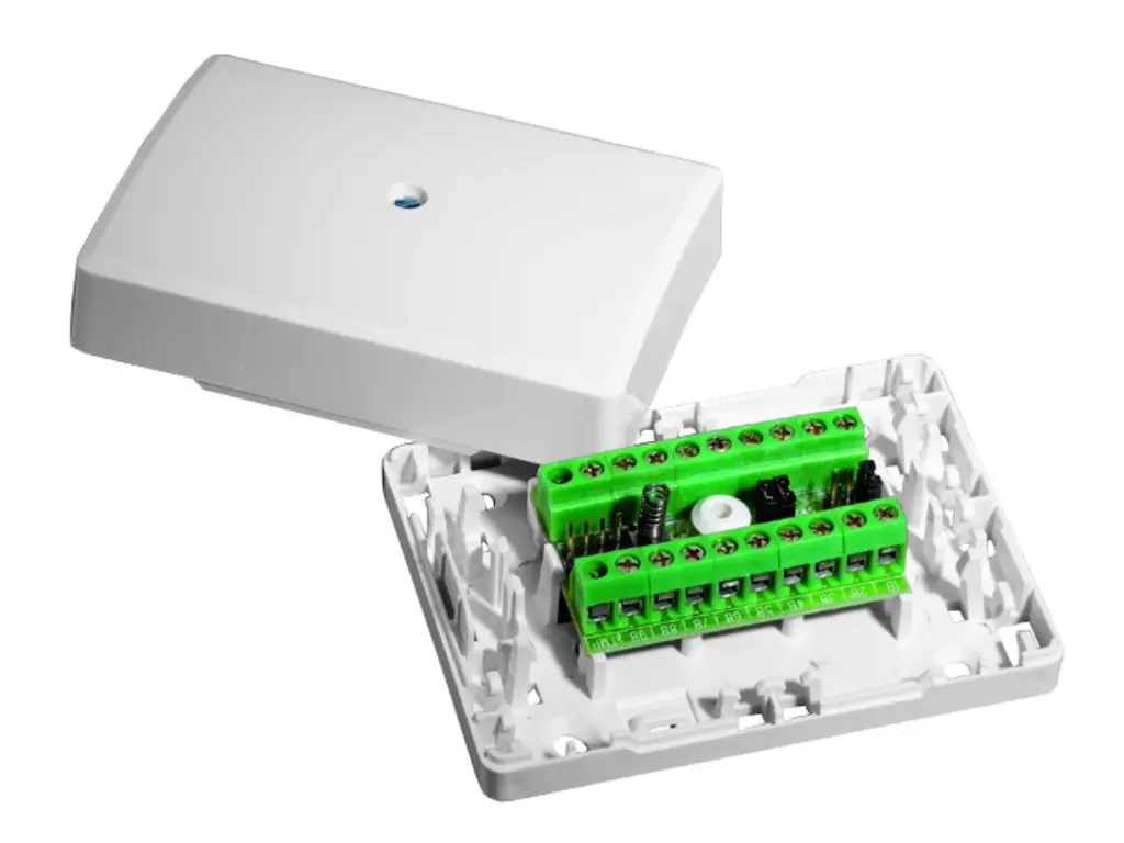 Propojovací krabice do stupně 3, tvrzený plast, tamper, zatížitelnost 0-125V DC/230V AC / 3A, 18+2 šroubovacích svorek, 9 variant propojení svorek jumper propojkami