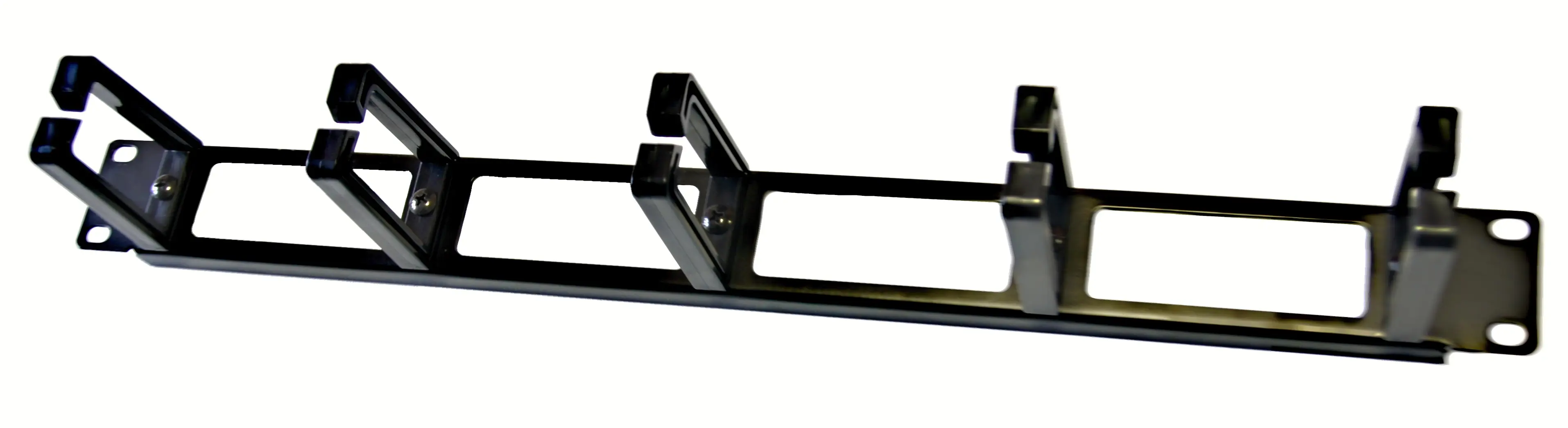 19" vyvazovací panel 1U perforovaný , 5x plastová úchytka 60x40mm -  černý