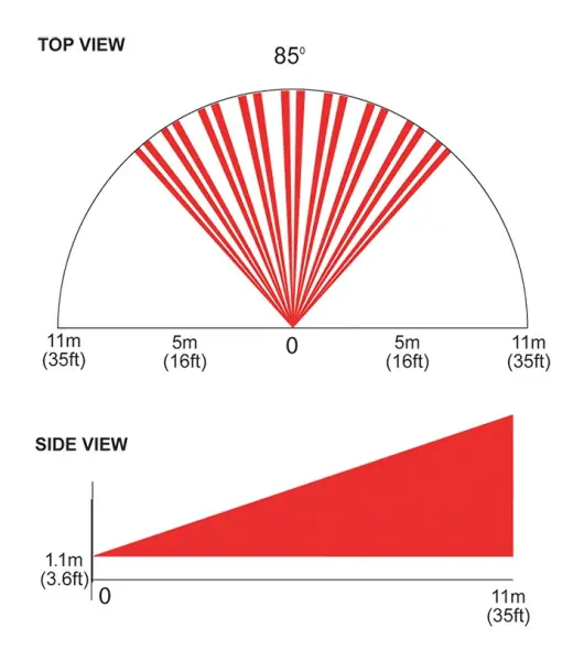 Venkovní PIR se dvěmi pyroelementy, dosah 11m / 90°. Zvýšená imunita vůči zvířatům. Doporučená montážní výška výška 2,1-2,7 m.