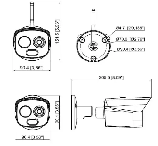 Termálna bezpečnostná bullet IP kamera s duálnym snímaním, nechladený termo senzor VOx s rozlíšením 256 x 196, objektív 3.5 mm (50.6°), rozlišovacia schopnosť <50 mK (@f/1.0,25Hz,300K).
