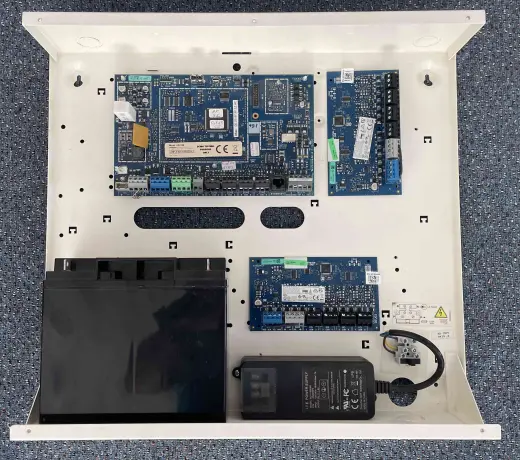 Ústredňa až 32 zón/4 bloky, napájací adaptér, LAN komunikátor, kovová skriňa