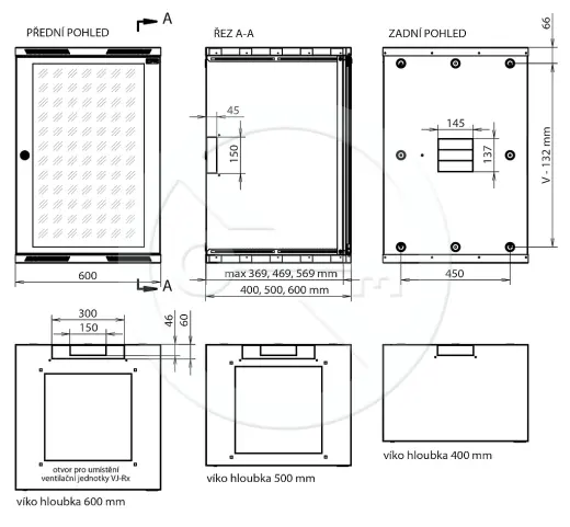 - pripravené stupy pre kabeláž v strope, dne aj na bočných stranách skrine formou vylamovacích otvorov.