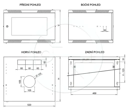 • v zadnej časti 4 otvory pripravené na uchytenie rozvádzača na stenu