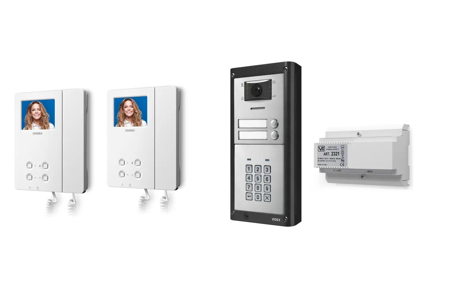 Dvojtlačidlová BUS2 dverová videosúprava série 4000 pre zapustenú montáž s videotelefónom série 6200 obsahuje: