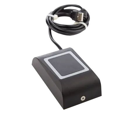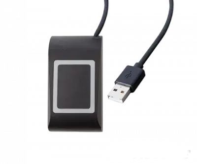 Stolová USB čítačka s možnosťou čítania a zápisu, primárne určená pre registrácia a konfigurácia RFID kariet.