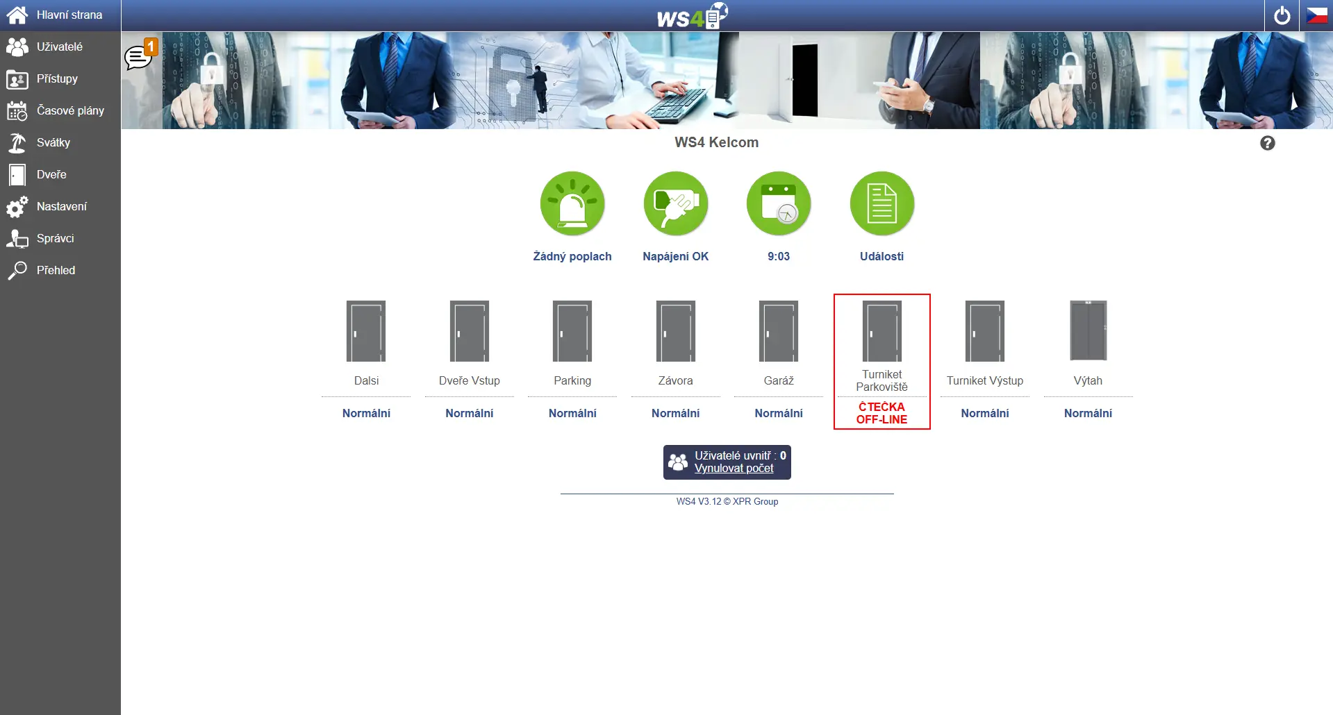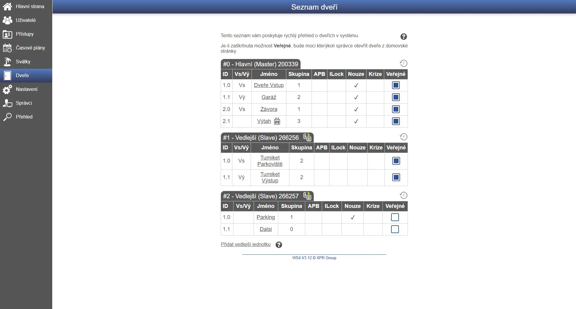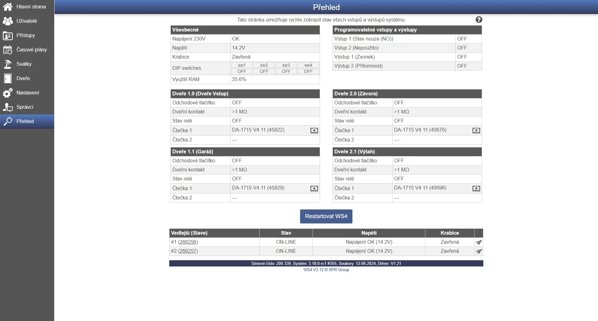 Riadiaca jednotka pre 4 dvere, 2.500 užívateľov s vlastnou databázou a vstavaným webovým serverom pre správu.