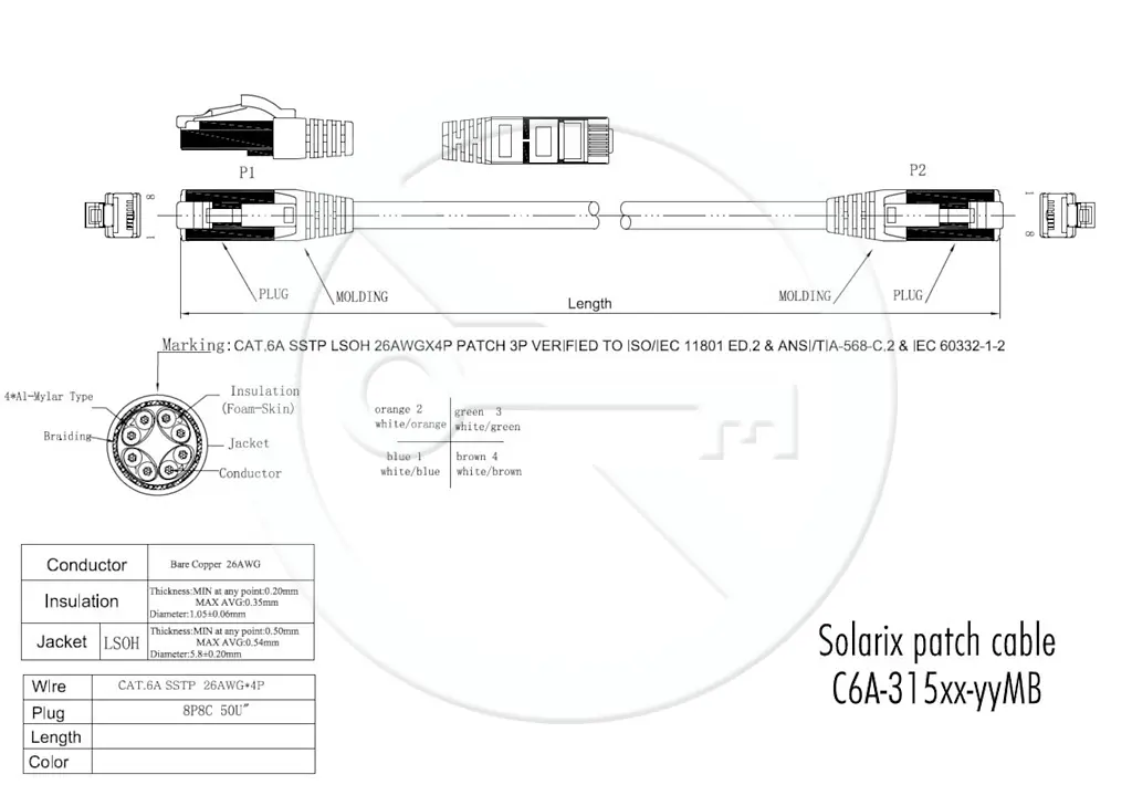 Stíněné patch kabely strukturované kabeláže Solarix kategorie 6A jsou vysoce spolehlivé a kvalitní komponenty, které jsou přizpůsobeny zvýšeným požadavkům na přenosové vlastnosti protokolu 10GBASE-T. Patch kabely jsou vyrobeny s tzv. litou ochranou, která zajišťuje pevné přilnutí konektoru k ochraně a také snižuje hodnoty přeslechu mezi jednotlivými páry v konektoru. Tato ochrana má speciální tenký design, který zaručuje, že lze tyto patch kabely použít v jakémkoliv patch panelu nebo aktivním prvku, a to i u zařízení s velkou hustotou portů. K výrobě patch kabelů jsou použity kvalitní konektory na licnu s krytím kontaktů 50 µ zlata. Patch kabely jsou nabízeny v různých délkách a v šedé barvě. Výhodou těchto spolehlivých patch kabelů kategorie 6A je tzv. dvojité stínění, kdy je každý pár v kabelu samostatně stíněn aluminiovou fólií a kolem všech čtyř párů v kabelu je veden oplet. Všechny patch kabely Solarix kategorie 6A jsou důkladně testovány a bez problému splňují požadavky na použití i pro ty nejnáročnější protokoly, které se na metalické kabeláži provozují, především pak 10GBASE-T.