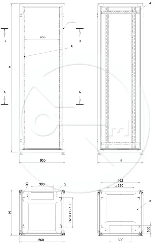 - Rozvaděč obsahuje dva páry 19" vertikálních lišt s potiskem pro identifikaci výšky umístění montovaných zařízení. Konstrukce rozvaděče umožňuje měnit polohu vertikálních lišt ve směru hloubky rozvaděče.