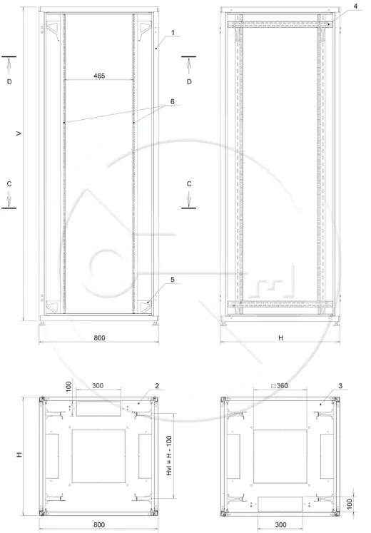 Rozvaděč obsahuje dva páry 19" vertikálních lišt s potiskem pro identifikaci výšky umístění montovaných zařízení. Konstrukce rozvaděče umožňuje měnit polohu vertikálních lišt ve směru hloubky rozvaděče.