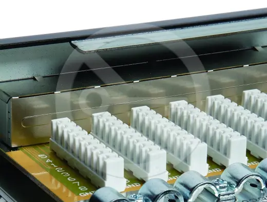 Součástí těla panelu je vyvazovací lišta, která umožňuje pevné uchycení a přehledné uspořádání datového kabelu.