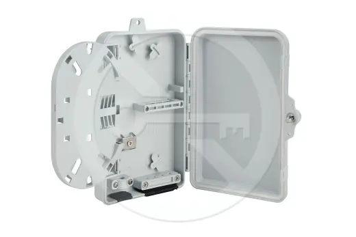 Optický nástěnný box slouží k ukončení optických kabelů ve venkovních i vnitřních instalací. Tento optický box se vyznačuje vysokým stupněm krytí IP65. Povrch optického nástěnného boxu je UV odolný. Je možno jej upevnit přímo na zeď za pomocí montážní sady. Optický box umožňuje ukončit až 4 vlákna v kombinaci adaptérů 4xSC simplex nebo 4xLC duplex, popřípadě 4xE2000. Obsahuje 1x vstup pro optický kabel s gumovou krytkou. Výstup disponuje 4 otvory pro patch kabely, které jsou opatřeny gumovou krytkou. Při umístění patch kabelu se nařízne gumová krytka a patch kabel se vsune dovnitř. Součástí optického boxu je i vertikální vyklápěcí dno, zajišťující snadnější manipulaci při ukončení a vyvázání pigtailů. Samotný box je uzamykatelný.