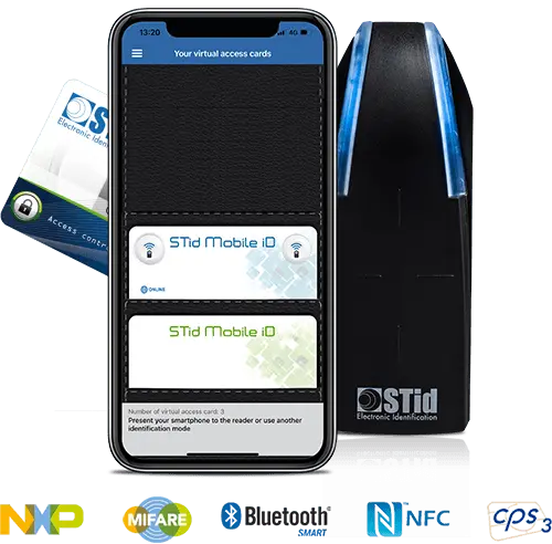 ARC1S/BT - Bezkontaktní čtečka 13.56MHz, NFC + BLE( Bluetooth ), pro mobilní virtuální ID karty, úzká, Wiegand, povrch. mont., černá