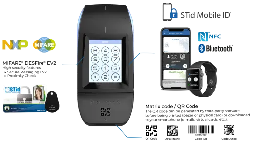 TechnologieMifare/Desfire, NFC, BLE, QR kód |