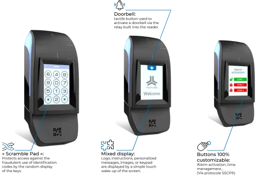 ARCS-CQ/BT - Bezkontaktní čtečka 13.56MHz, NFC + BLE + QR kód s dotykovým LCD displejem, široká, Wiegand, povrch. mont., černá