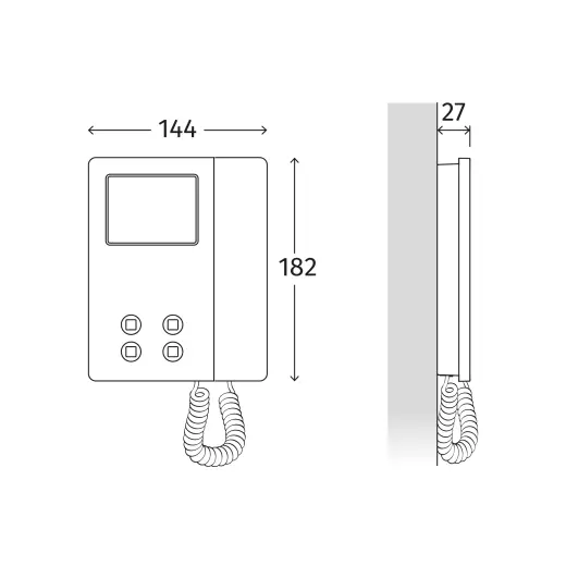 TFT LCD monitor s vysokým rozlišením, OSD odporová dotyková obrazovka, 4 tlačítka konfigurovatelná pro funkce: otevření dveří, volání interkomu, automatické spuštění, přepínání kamery, časovaná služba soukromí.