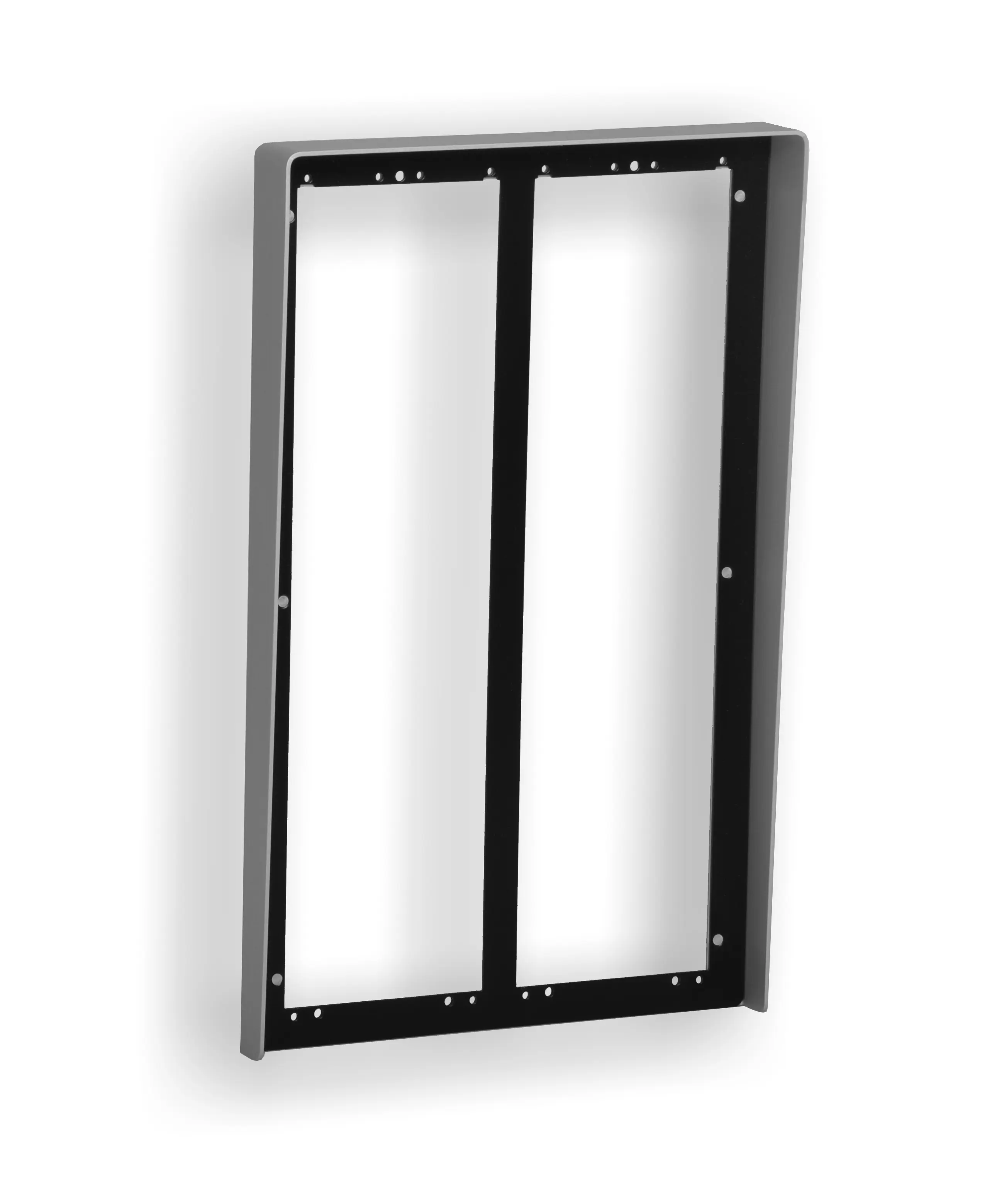 Clona proti dešti pro 6 modulů, série 8000, hliník. Používá se pro montáž mezi čelní rámeček a zapuštěnou montážní krabičku. Toto příslušenství slouží jako ochrana proti slunci a dešti a k zakrytí okusů zdi okolo venkovní stanice.