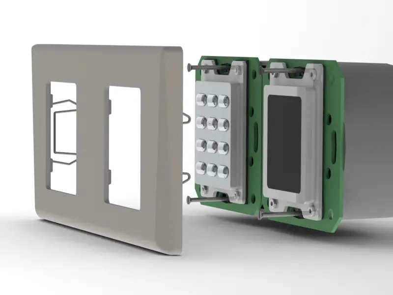 Snímače XPR řady DIN je možné umístit vedle sebe (nad sebe) a mezi sebou propojit. Vytvoříte tak dvojí zabezpečení průchodu. Pro překrytí snímačů se místo dvou obyčejných rámečků použije stylový dvojrámeček.
